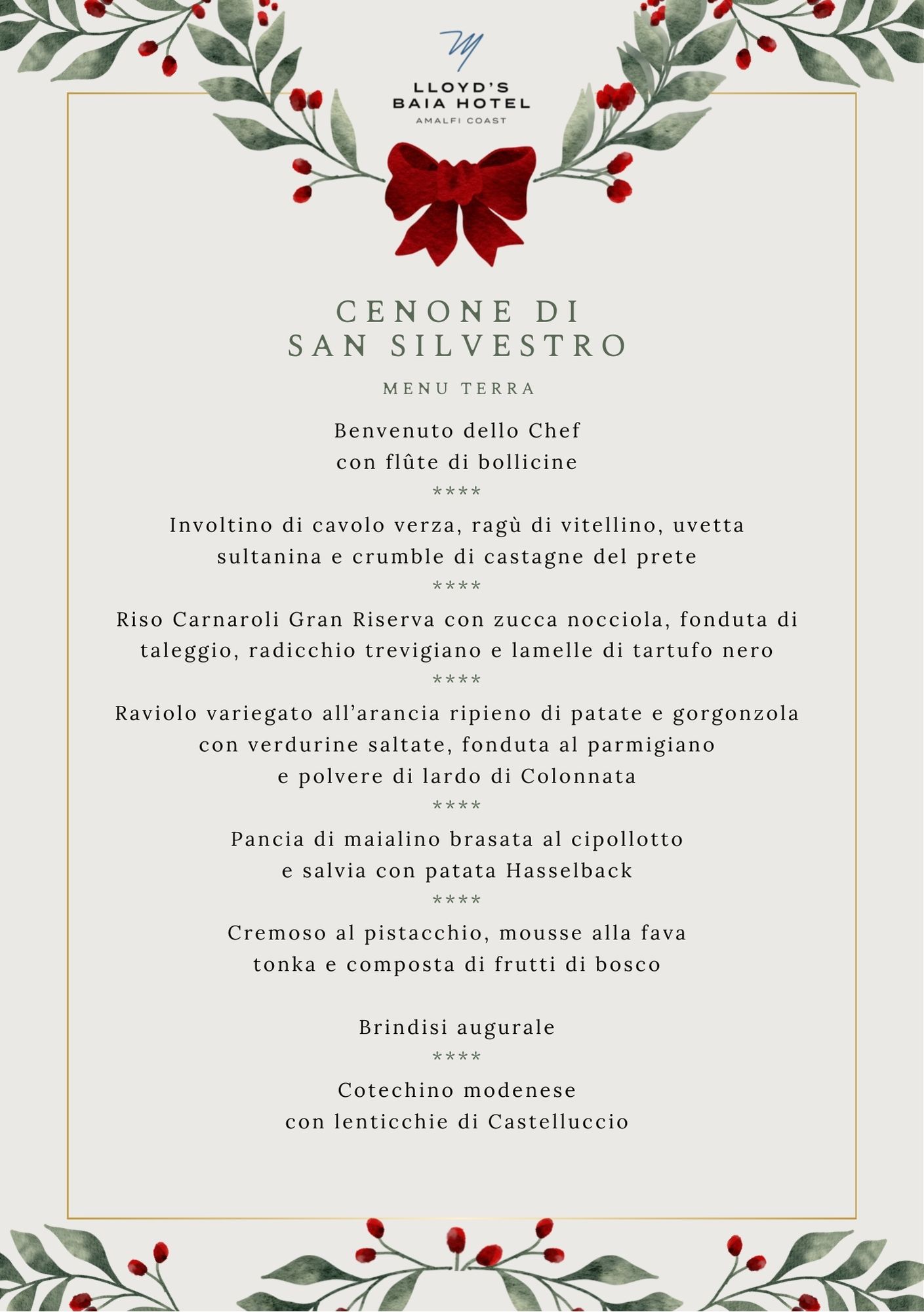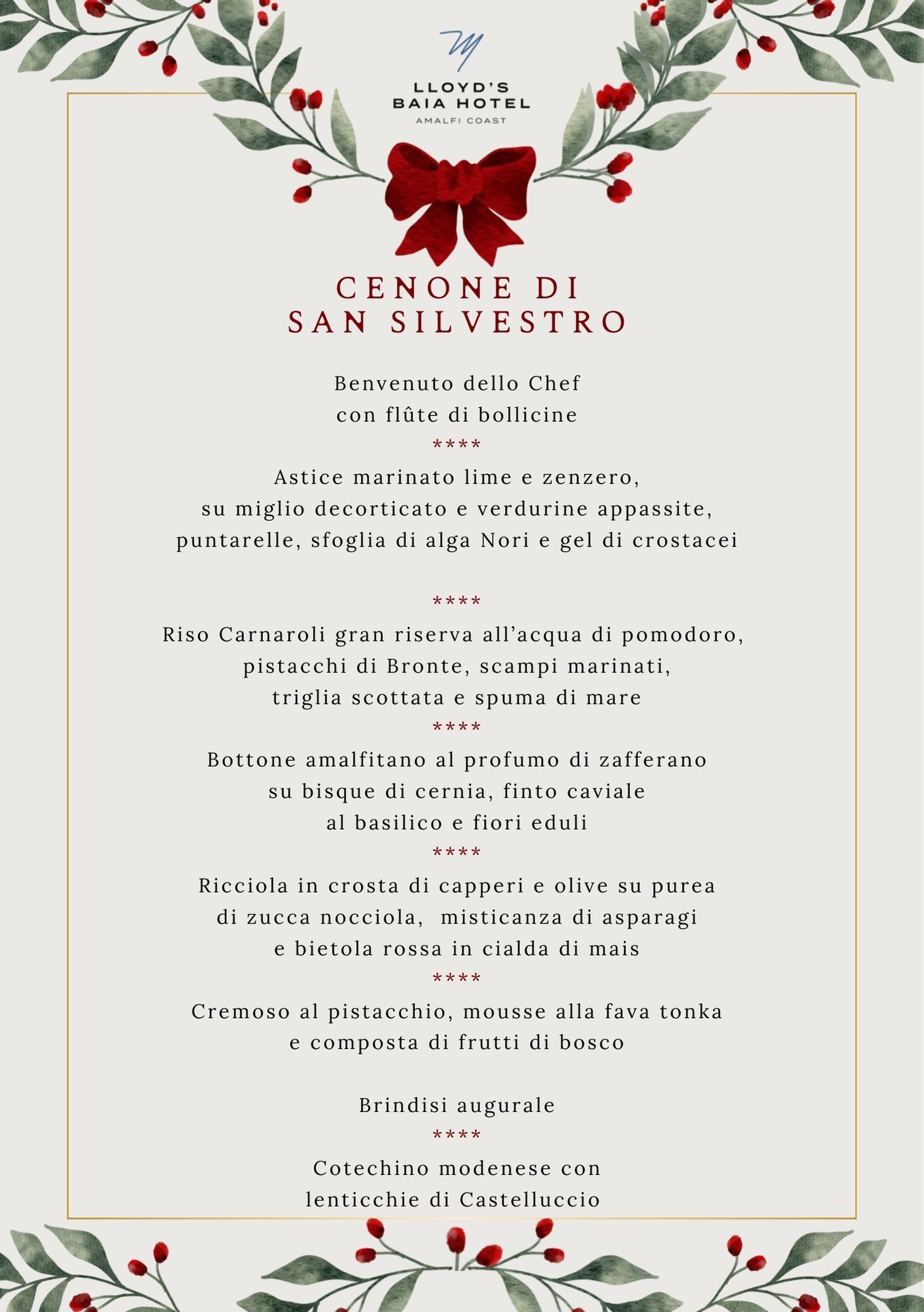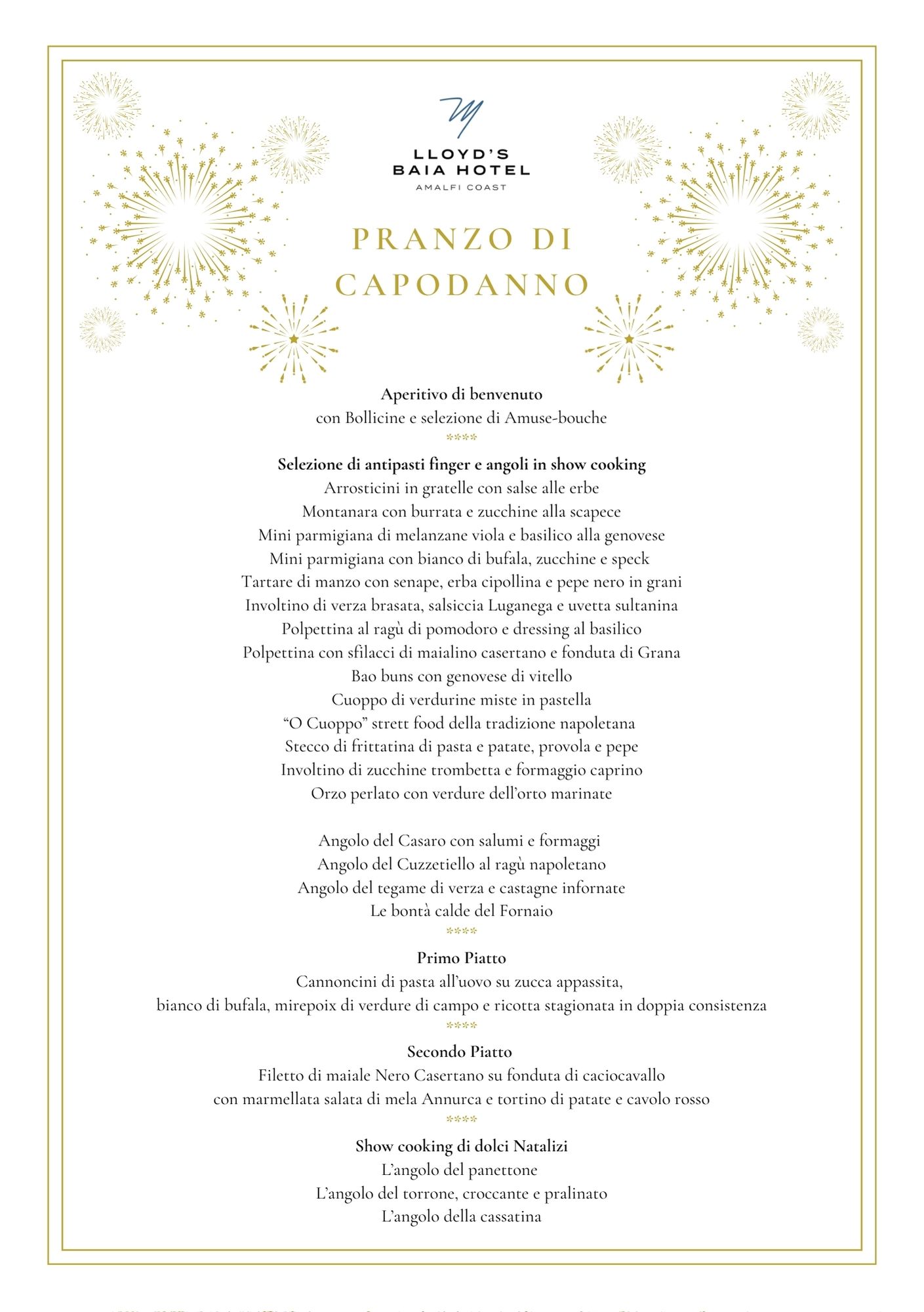 Al Lloyd’s Baia Hotel ti attende una serata esclusiva, pensata per chi desidera iniziare l’anno nuovo con eleganza, gusto e attenzione al dettaglio.