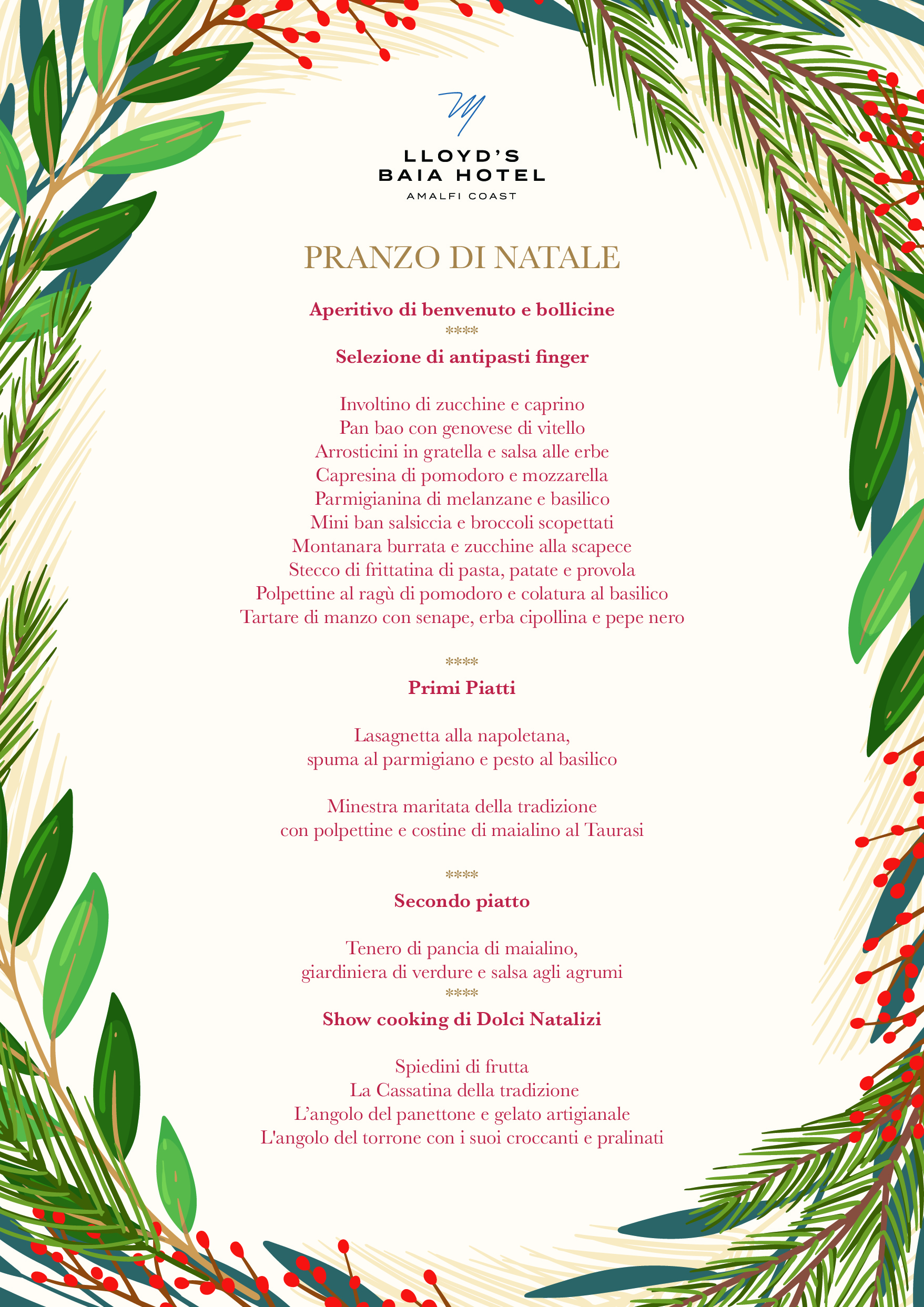 Come ogni anno, il Lloyd’s Baia Hotel offre ai propri ospiti la possibilità di trascorrere il periodo natalizio coccolati dal nostro staff.